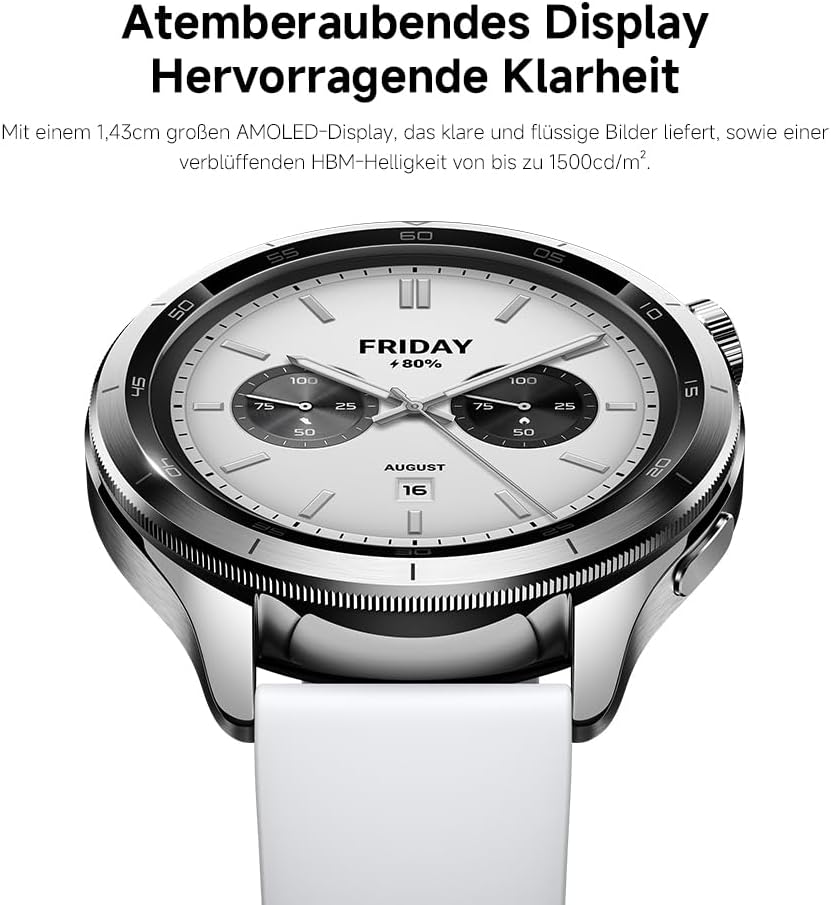 1,43 colio AMOLED ekranas su 466 × 466 pikselių raiška ir 2200 nitų ryškumu, užtikrinantis aiškų vaizdą bet kokiomis apšvietimo sąlygomis